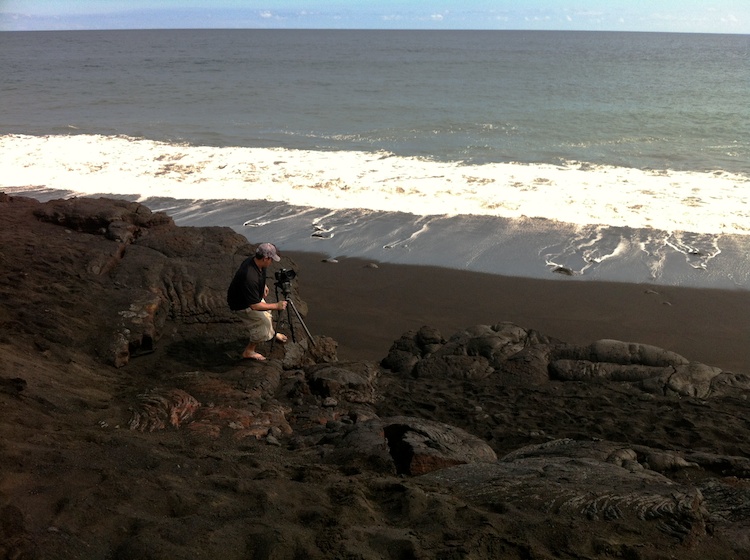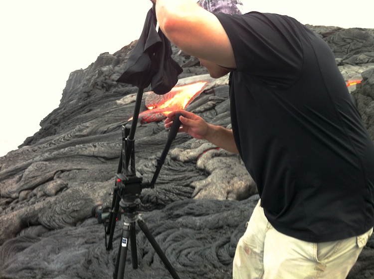 It was a very fast paced shoot. I landed in Hilo on Friday morning at 7:00AM, ate breakfast with the Techy3 gang and we were shooting at our first location by 8:30AM. We dropped off any unneeded gear and luggage and darted off to Kalapana and hiked for a few miles to capture the lava flow. We got so close that at times we could see the red glow of lava under our feet.